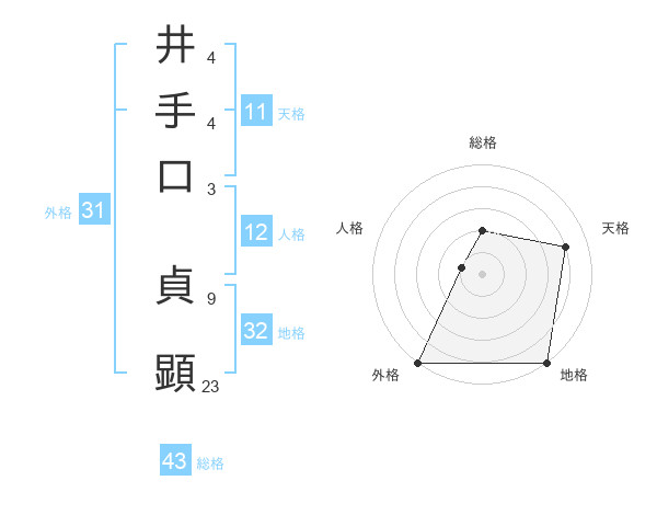 井手口 貞顕さんを姓名の画数から五運を鑑定