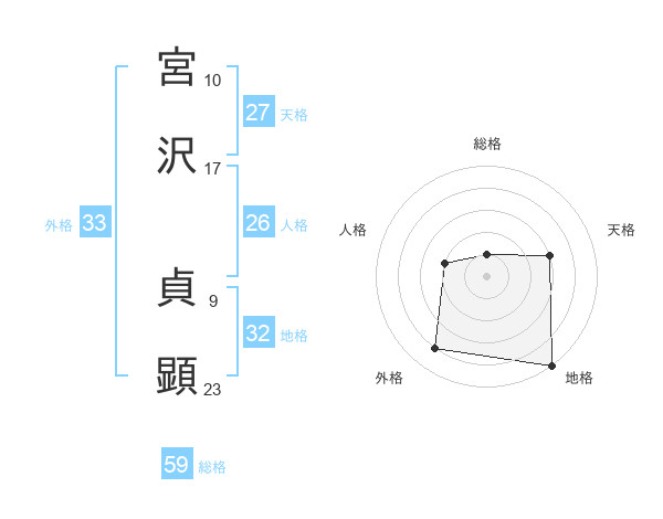 宮沢 貞顕さんの総格は59画の1点!