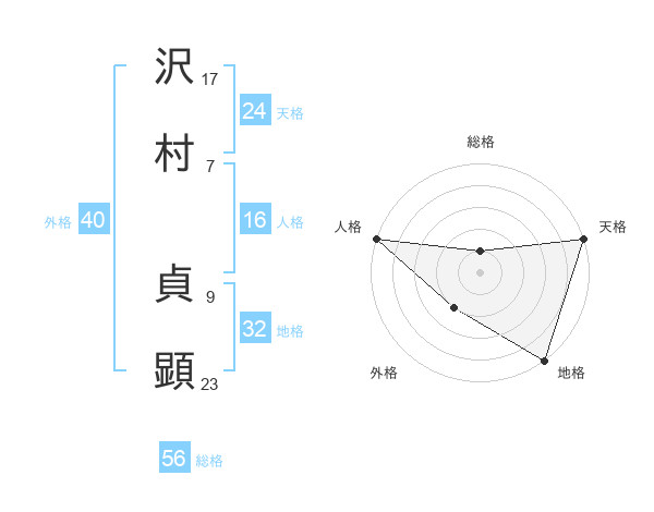 沢村 貞顕さんを姓名の画数から五運を鑑定