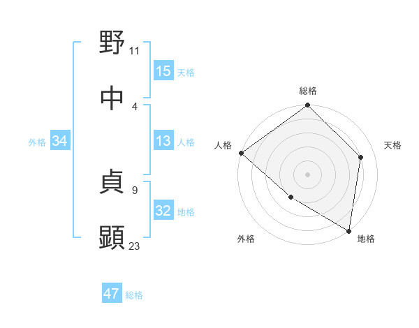 野中 貞顕さんを姓名の画数から五運を鑑定