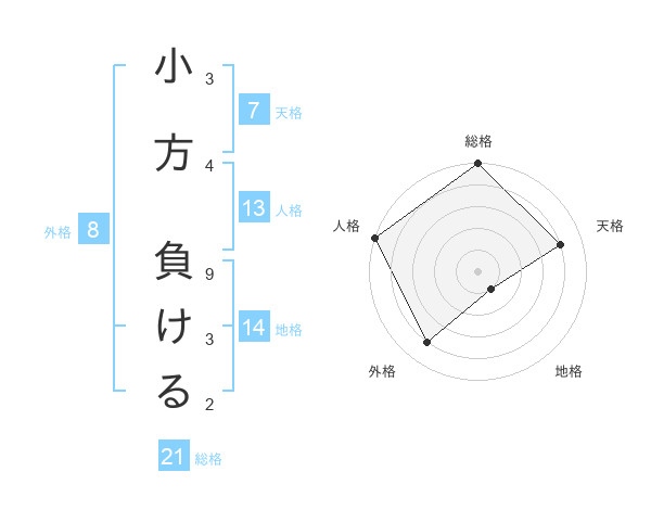 小方 負けるさんの総格は21画の5点
