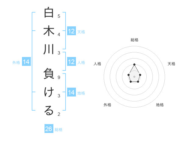 白木川 負けるさんの総格は26画の2点!