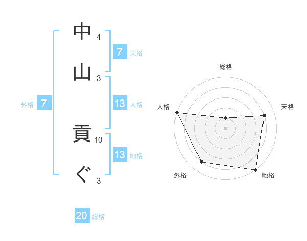 中山 貢ぐさんを姓名の画数から五運を鑑定