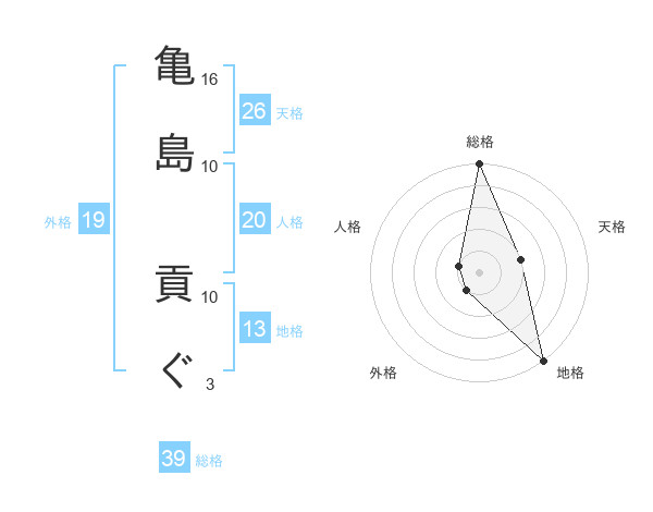 亀島 貢ぐさんの総格は39画の5点!