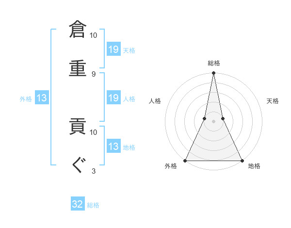 倉重 貢ぐさんを姓名の画数から五運を鑑定