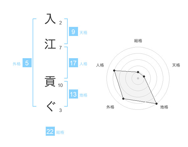 入江 貢ぐさんの地格は13画の5点!