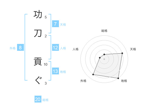 功刀 貢ぐさんを姓名の画数から五運を鑑定