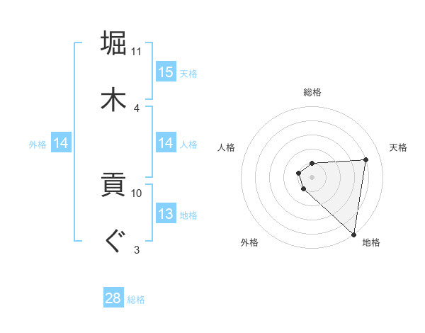 堀木 貢ぐさんを姓名の画数から五運を鑑定