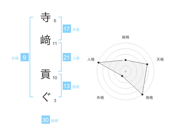 寺﨑 貢ぐさんの地格は13画の5点!
