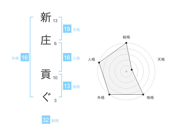 新庄 貢ぐさんの地格は13画の5点!