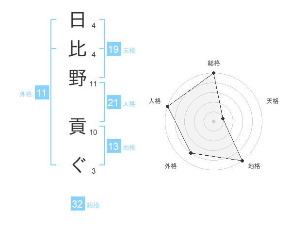 日比野 貢ぐさんの総格は32画の5点!