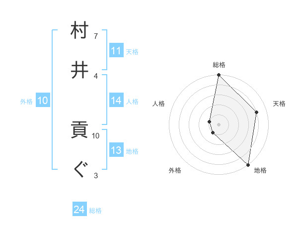 村井 貢ぐさんの総格は24画の5点!