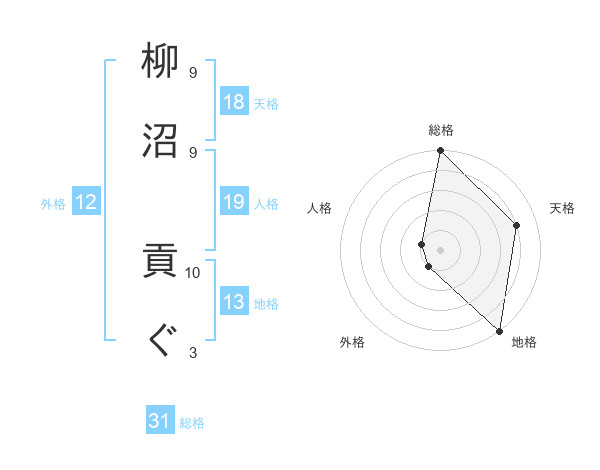 柳沼 貢ぐさんの地格は13画の5点!