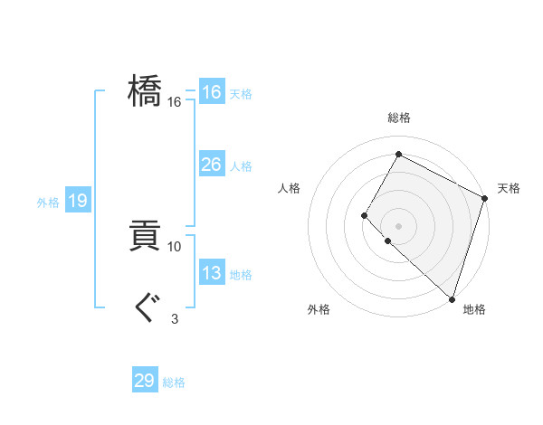 橋 貢ぐさんの総格は29画の4点!