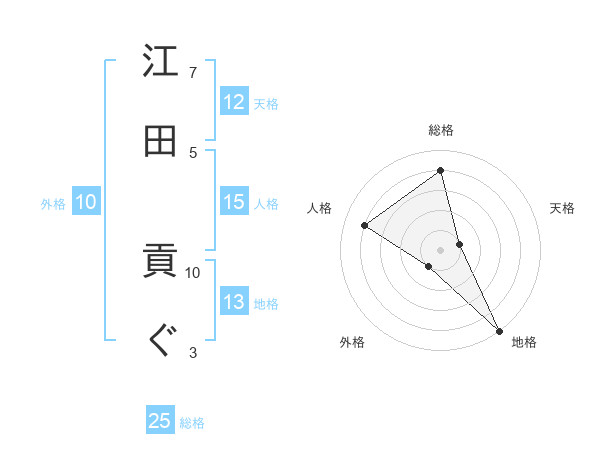 江田 貢ぐさんを姓名の画数から五運を鑑定
