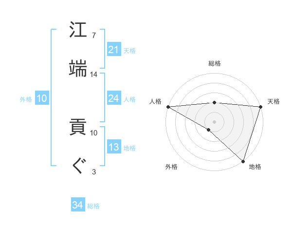 江端 貢ぐさんを姓名の画数から五運を鑑定