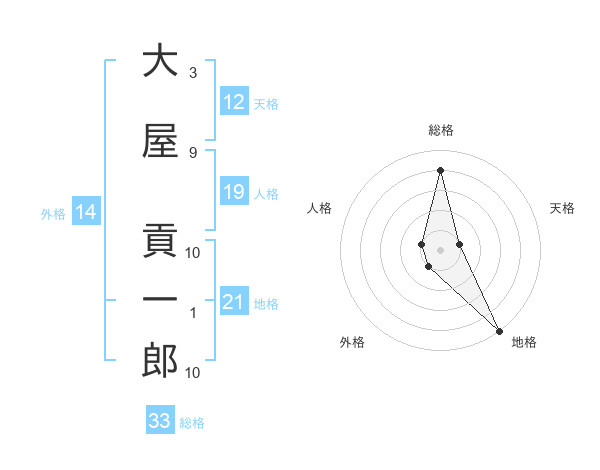 大屋 貢一郎さんの総格は33画の4点!
