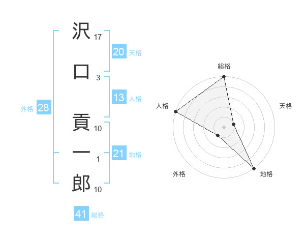 沢口 貢一郎さんを姓名の画数から五運を鑑定