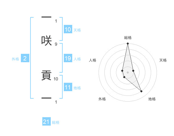 一咲 貢一さんの総格は21画の5点!