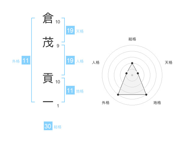倉茂 貢一さんの人格は19画の1点!