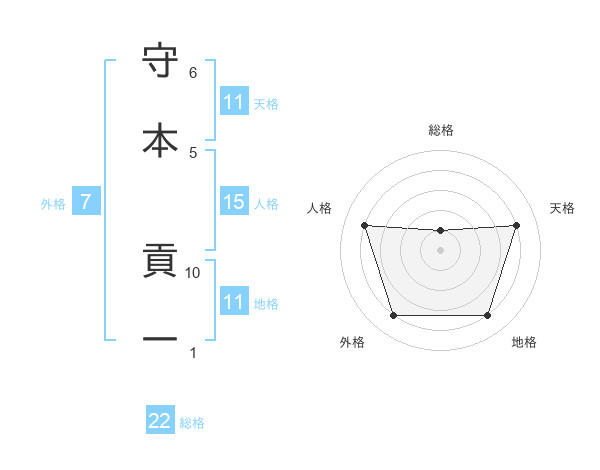 守本 貢一さんの総格は22画の1点