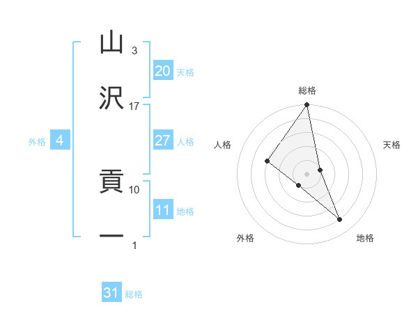 山沢 貢一さんの総格は31画の5点!