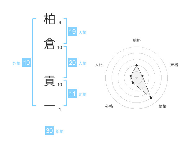 柏倉 貢一さんの天格は19画の1点!