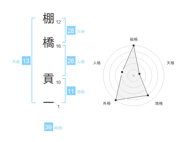 棚橋 貢一さんを姓名の画数から五運を鑑定