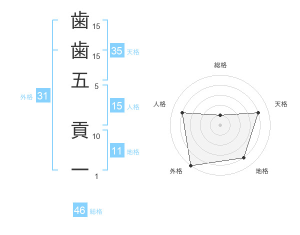 歯歯五 貢一さんの外格は31画の5点!