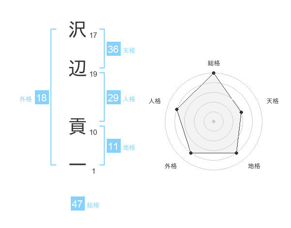 沢辺 貢一さんの総格は47画の5点!