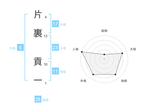 片裏 貢一さんを姓名の画数から五運を鑑定