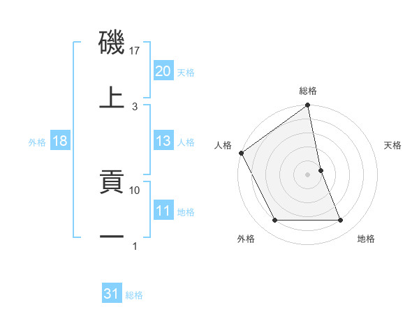 磯上 貢一さんを姓名の画数から五運を鑑定