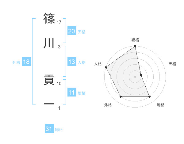 篠川 貢一さんを姓名の画数から五運を鑑定