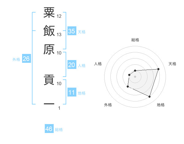 粟飯原 貢一さんを姓名の画数から五運を鑑定