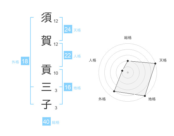 須賀 貢三子さんを姓名の画数から五運を鑑定