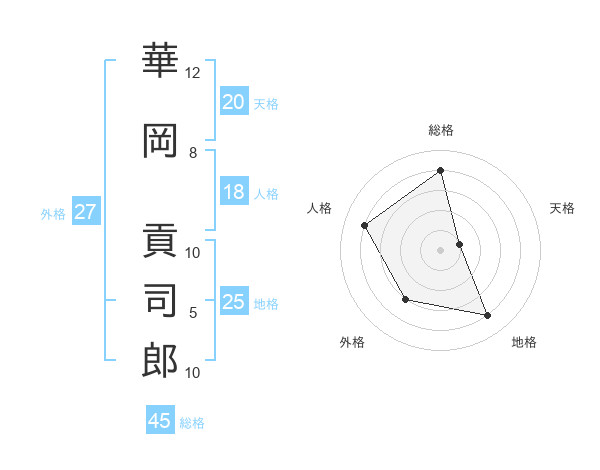 華岡 貢司郎さんの総格は45画の4点!