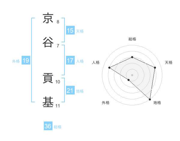 京谷 貢基さんの天格は15画の4点!