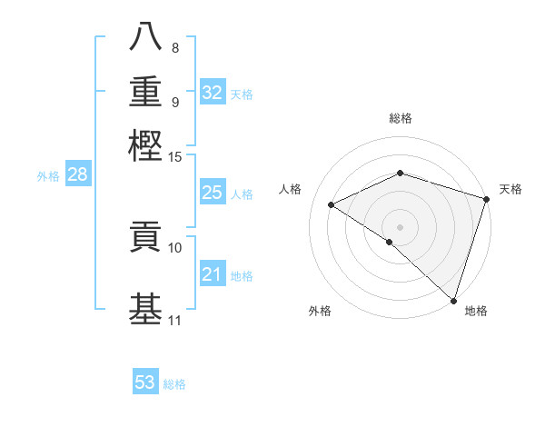 八重樫 貢基さんを姓名の画数から五運を鑑定