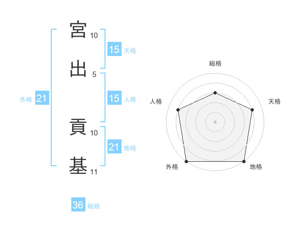 宮出 貢基さんの天格は15画の4点!
