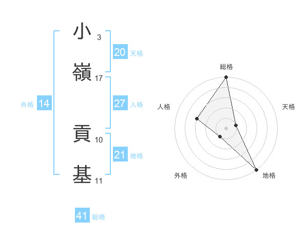 小嶺 貢基さんの総格は41画の5点!
