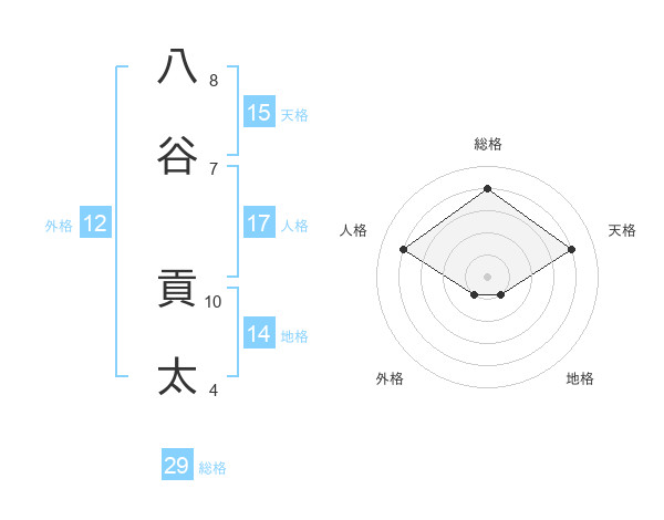 八谷 貢太さんの総格は29画の4点!