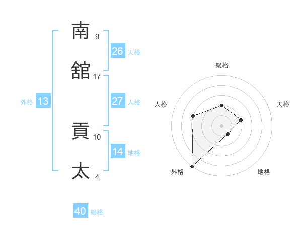 南舘 貢太さんの外格は13画の5点!