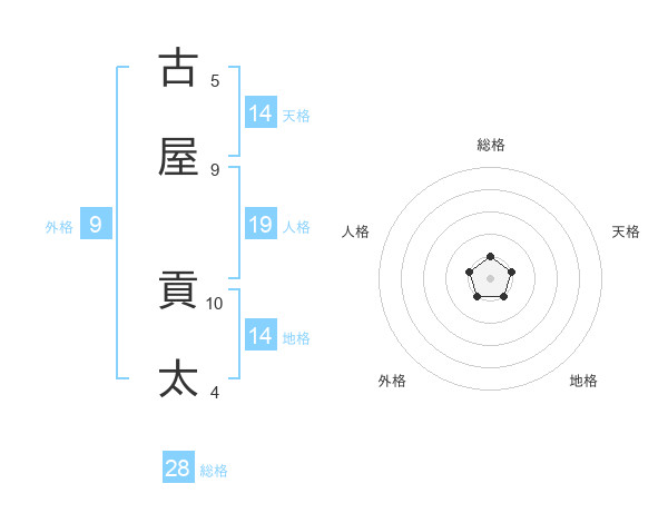 古屋 貢太さんを姓名の画数から五運を鑑定