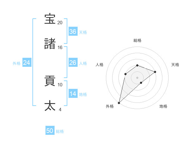 宝諸 貢太さんを姓名の画数から五運を鑑定