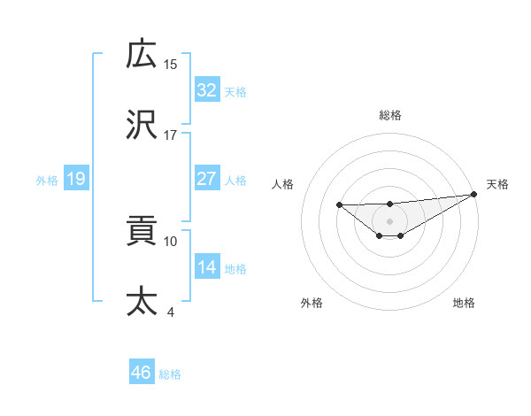 広沢 貢太さんの天格は32画の5点!