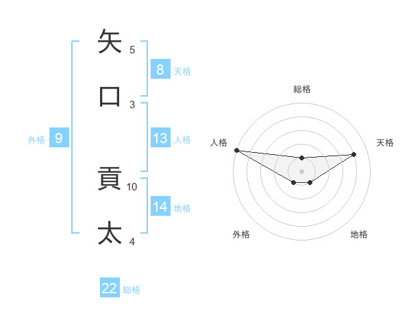 矢口 貢太さんの天格は8画の4点!