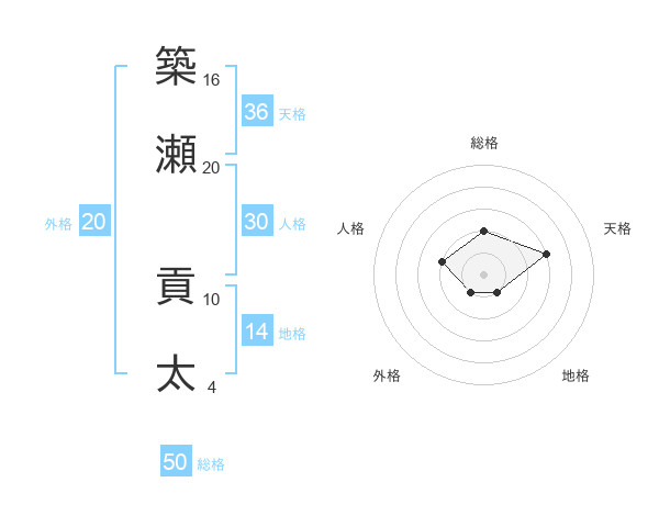 築瀬 貢太さんの総格は50画の2点!