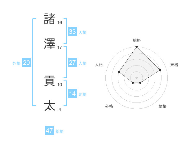 諸澤 貢太さんの総格は47画の5点!