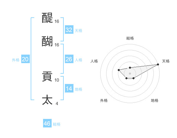 醍醐 貢太さんを姓名の画数から五運を鑑定
