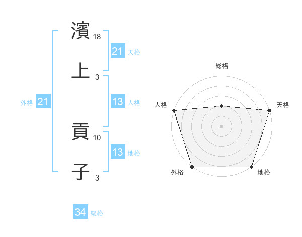 濱上 貢子さんを姓名の画数から五運を鑑定
